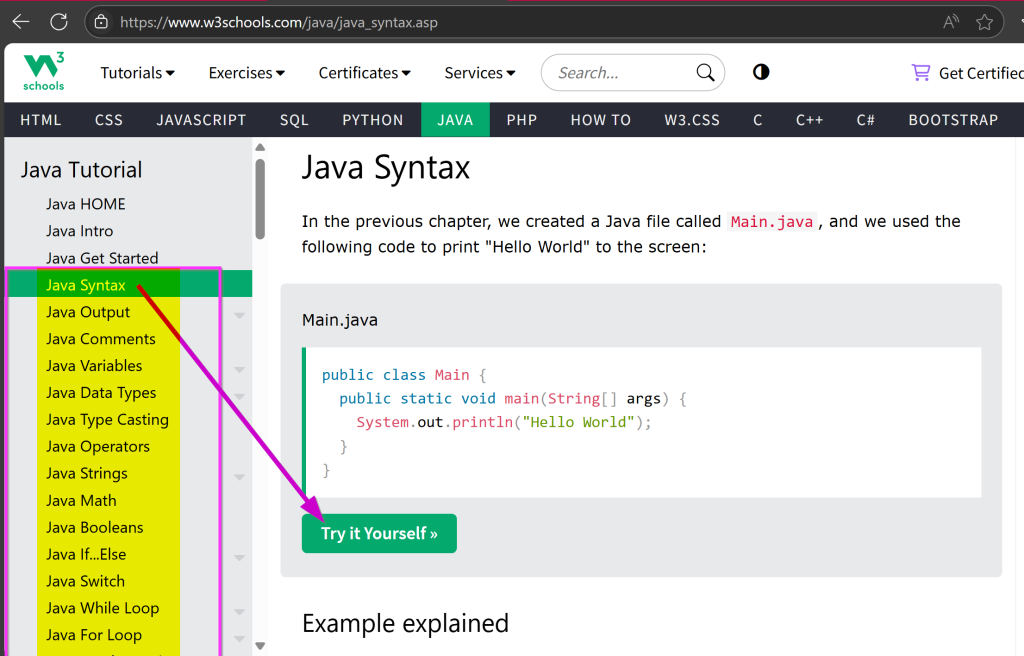 Note that this is a playlist of 10 short videos totaling about 30 minutes collectively, click on the X/10 icon in the upper right to see the whole playlist, or go directly to it here: Java Tutorial – YouTube